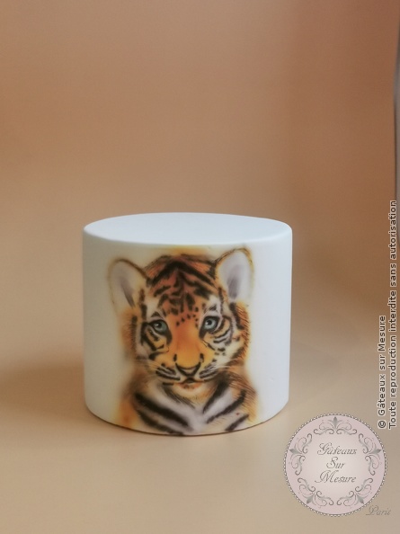 Réalisation de ce dessin directement sur un faux gâteau de 15 cm de haut.